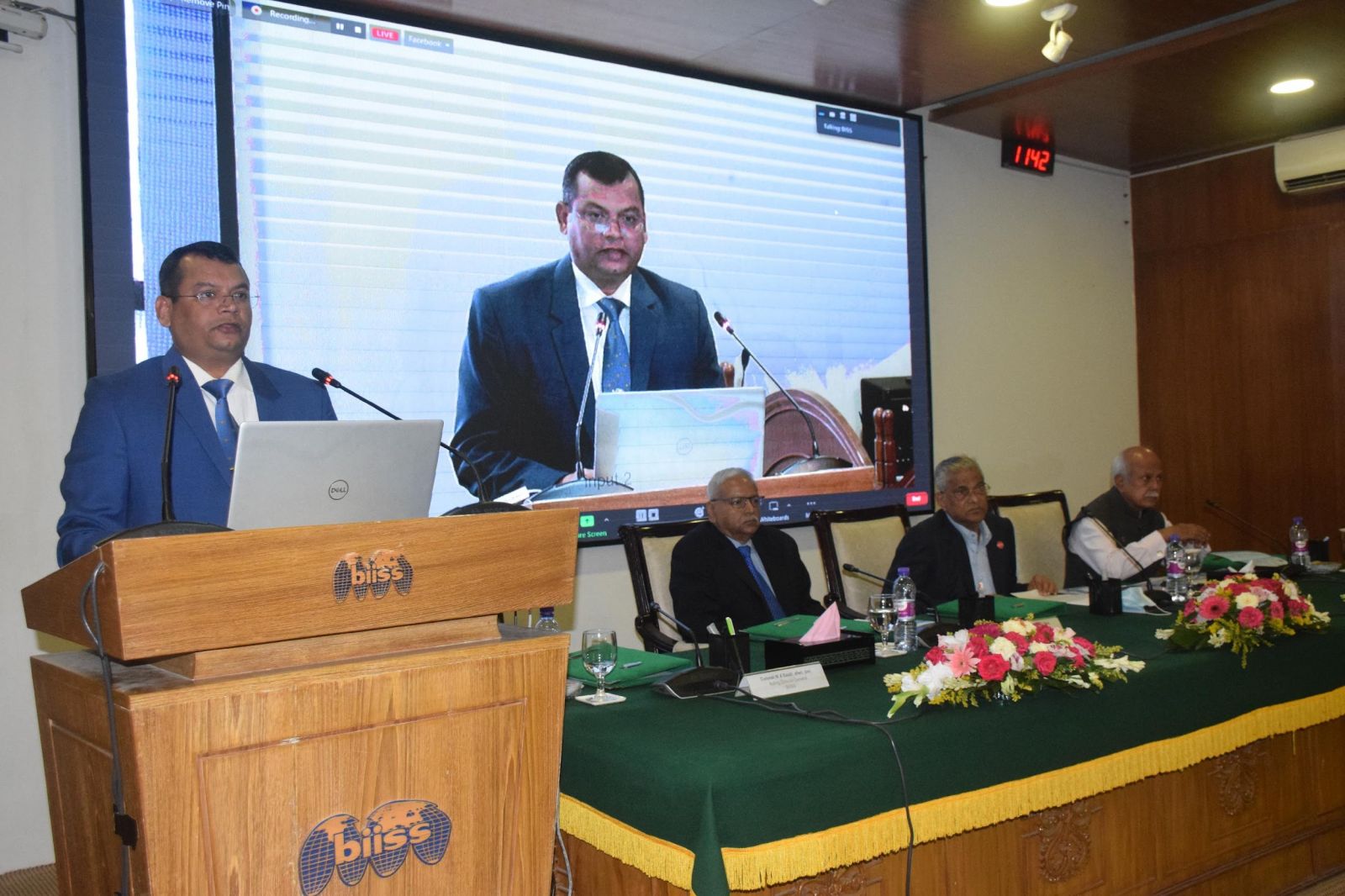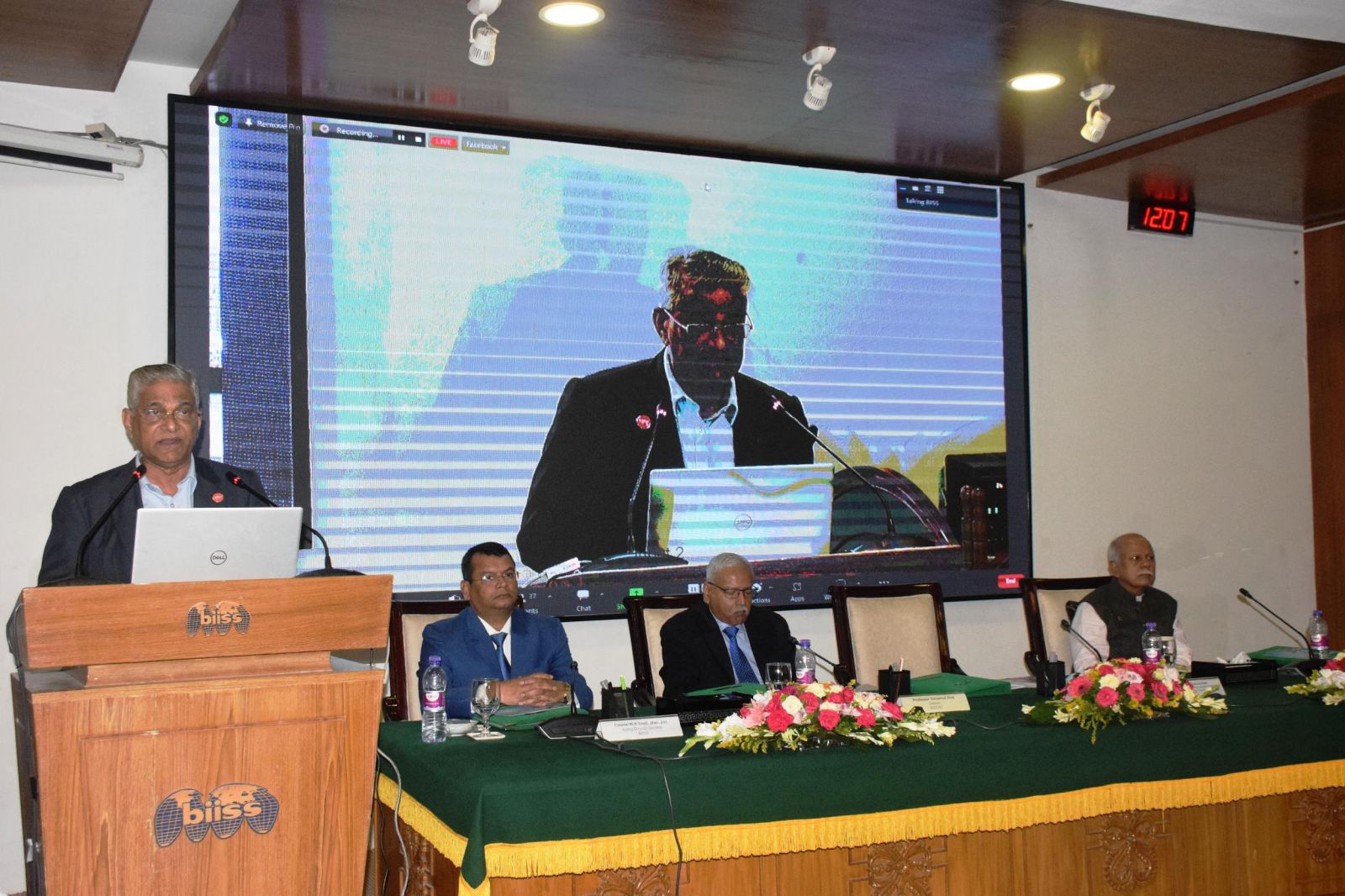 Bangladesh Institute of International and Strategic Studies (BIISS) organised a hybrid seminar titled “Climate Diplomacy: Constraints and Choices for Bangladesh”, on 04 October 2022, at the BIISS auditorium. The seminar was divided into two sessions. H.E. Dr. Shamsul Alam, Honourable Minister of State, Ministry of Planning, Government of the People’s Republic of Bangladesh, graced the Seminar as Chief Guest. Professor Saleemul Huq, Director, International Centre for Climate Change and Development (ICCCAD), was the Special Guest. Ambassador Kazi Imtiaz Ahmed, PAA, Chairman, BIISS, chaired the inaugural session while Colonel M A Saadi, afwc, psc, Acting Director General of BIISS, delivered the Welcome Address. The Working Session was chaired by Ambassador Shamsher M. Chowdhury, BB, Former Foreign Secretary of Bangladesh. Four papers were presented in the Working Session. Professor Mizan R. Khan, Deputy Director, ICCCAD, presented on Financing for Loss and Damage: Concerns for Bangladesh; Arif M. Faisal, Programme Specialist (Nature, Climate & Energy), UNDP Bangladesh, presented on The Role of International Organisations in Climate Diplomacy; Mirza Shawkat Ali, Director, Climate Change and International Convention, Department of Environment, Government of the People’s Republic of Bangladesh, presented on Major Outcomes of COP 26 and Issues of COP 27, and, Dr. Sufia Khanom, Senior Research Fellow, BIISS, presented on Bangladesh’s Presidency in Climate Vulnerable Forum (CVF): An Assessment of Climate Leadership in Perspective. The presentations were followed by an open discussion.