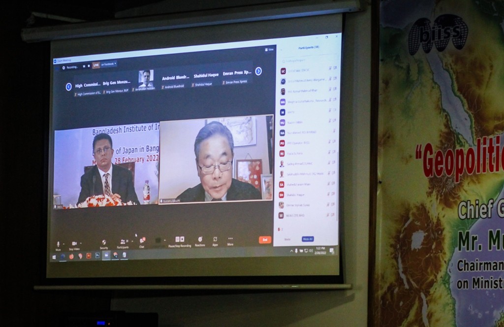 Bangladesh Institute of International and Strategic Studies (BIISS) and the Embassy of Japan in Bangladesh have jointly organized a Hybrid Seminar on “Geopolitics of Indo-Pacific and Reconnecting the Bay of Bengal Littorals” on 28 February 2022. Mr. Muhammad Faruk Khan, MP, Hon’ble Chairman, Parliamentary Standing Committee on Ministry of Foreign Affairs, Bangladesh Parliament, graced the occasion as the chief guest. H.E. Mr ITO Naoki, Ambassador of Japan to Bangladesh, graced the occasion as the special guest. Major General Mohammad Maksudur Rahman, OSP, BSP, psc, Director General, BIISS, delivered the welcome address. Ambassador Kazi Imtiaz Hossain, paa, Chairman, BIISS presided over the inaugural session and delivered the concluding remarks. In the working session, Professor Imtiaz Ahmed, Department of International Relations, University of Dhaka, presented on “The Changing Nature of Geopolitics: Making Sense of Bangladesh’s Position”; Professor KIKUCHI Tsutomu, Professor of International Political Economy, Aoyama Gakuin University, Japan, made a presentation on “Beyond US-China Relations: Japan’s Strategic Vision for the Indo-Pacific”, Professor Lailufar Yasmin, Department of International Relations, University of Dhaka deliberated on “The Rise of the Indo-Pacific: Bangladesh-Japan Relations”, and Professor TAKAHARA Akio, Professor of Graduate School of Public Policy, The University of Tokyo, presented on “FOIP and Maritime Cooperation: Japan’s Initiative”. The working session was moderated by Professor Rashed Uz Zaman, Department of International Relations, University of Dhaka.