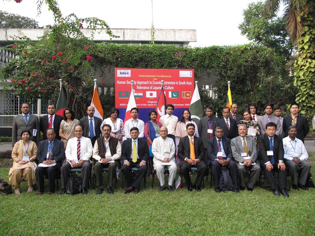 An International Conference on Human Security Approach to Counter Extremism in South Asia: Relevance of Japanese Culture was held at BIISS Auditorium on 24 November 2009. The Conference was organised by BIISS with the support of the Japan Foundation. Major General Sheikh Md Monirul Islam, ndc, psc, Director General, BIISS delivered the welcome address. Advocate Shahara Khatun, MP, Hon'ble Minister for Home Affairs Government of the Peoples Republic of Bangladesh was the Chief Guest at the Inaugural Session of the Conference. H. E. Mr. Tamotsu Shinotsuka, Ambassador of Japan to Bangladesh was present as Special Guest at the Inaugural Session . Major General Muhammed Firdaus Mian, psc, Chairman, Board of Governors, BIISS, chaired the session. Beside Bangladesh the scholars from India, Japan Nepal, Pakistan and Sri Lanka presented papers in the conference. In the First Working Session papers were presented by Dr. Moonis Ahmar, Professor and Chairman, Department of International Relations, University of Karachi, Pakistan on State of Human Security in South Asia and Prof. Sahadevan Ponmoni, Chairperson, Centre for South, Central, South East Asia & South West Pacific Studies, School of International Studies, Jawaharlal Nehru University, Delhi, India on Mapping Extremism in South Asia. The discussants were Dr. Iftekharuzzaman, Executive Director, Transparency International Bangladesh (TIB) and Brigadier General Shahedul Anam Khan, ndc, psc, (Retd.), Editor, Strategic Affairs, The Daily Star, Bangladesh respectively. Major General Sheikh Md. Monirul Islam, ndc, psc, Director General, BIISS chaired the session. In the Second Working Session presentations were made by Prof. Gamini Keerawella, Head, Department of History University of Pearadeniya, Kandy, Sri Lanka on Human Security and Extremism in Sri Lanka: Synergy and Conflict, Dr. Anindya Jyoti Majumdar, Department of International Relations, Jadavpur University, Kolkata, India on Human Security and Extremism in India: Synergy and Conflict and Dr. Abul Kalam Azad, Research Director, BIISS on Human Security and Extremism in Bangladesh: Synergy and Conflict. The discussants included Mr. A.K.M. Abdus Sabur, Research Director, BIISS, Dr. A T Salahuddin Ahmed, Senior Research Fellow, BIISS and Dr. M. Enamul Hoque, Former Inspector General of Police, and Member, Law Commission, Bangladesh. The session was chaired by Ambassador M. Maroof Zaman, Additional Foreign Secretary, Ministry of Foreign Affairs, Bangladesh. Major General Muhammad Firdaus Mian, psc, Chairman, BOG, BIISS chaired the Third Working Session. Papers were presented by Prof. Dr. Bishnu Hari Nepal, Former Ambassador of Nepal to Japan on Human Security and Extremism in Nepal: Synergy and Conflict , Dr. Shaheen Akhtar, Research Fellow, Regional Studies, Islamabad, Pakistan on Human Security and Extremism in Pakistan: Synergy and Conflict and Mr. Osamu Miyata, Associate Professor, University of Shizuoka, Japan on Human Security as a Policy Tool in Japan. The discussants were Dr. Abdur Rob Khan, Associate Professor, North South University, Dhaka, Air Cdre Ishfaq Ilahi Choudhury, ndc, psc, (Retd), Registrar, The University of Asia Pacific, Dhaka and Dr. Imtiaz Ahmed, Professor, Department of International Relations, University of Dhaka respectively. In the Fourth and Concluding Session Mr. Katsuhisa Furukawa, Fellow, Research Institute of Science and Technology for Society, Japan Science and Technology Agency, Tokyo, Japan and Dr. Shaheen Afroze, Research Director, BIISS presented papers on Japan and its Culture of Peace: Relevance for South Asia and A Comparative Study of the Solutions and their Practicability respectively. Ambassador Jamil Majid, Former Principal, Foreign Service Academy and Former Ambassador of Bangladesh to Japan and Prof. Syed Anwar Husain, Department of History, University of Dhaka were the designated discussants. Prof. Muzaffer Ahmad, Former Chairman, Transparency International Bangladesh (TIB) and Member, Board of Governors of BIISS was present as Chief Guest at the Concluding Session . Major General Sheikh Md. Monirul Islam, ndc, psc, Director General, BIISS chaired the Concluding Session . In the Open Discussion of the sessions of two-day conference there were lively participation by academia, media, government officials, business circles, representatives from the civil society and NGOs as well as other concerned professionals.