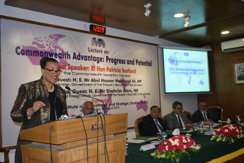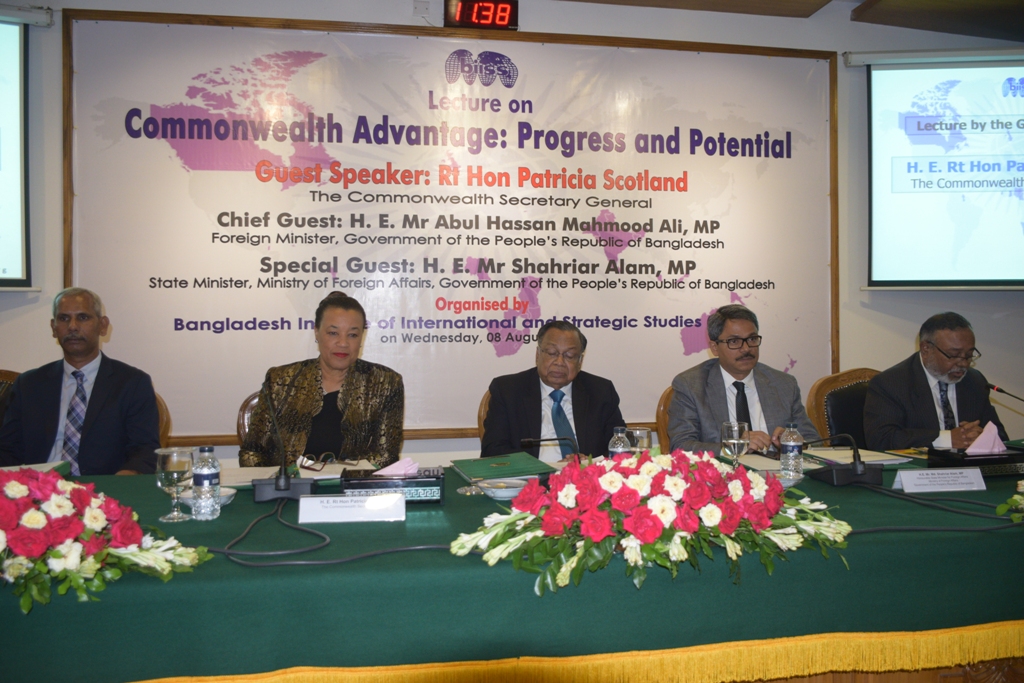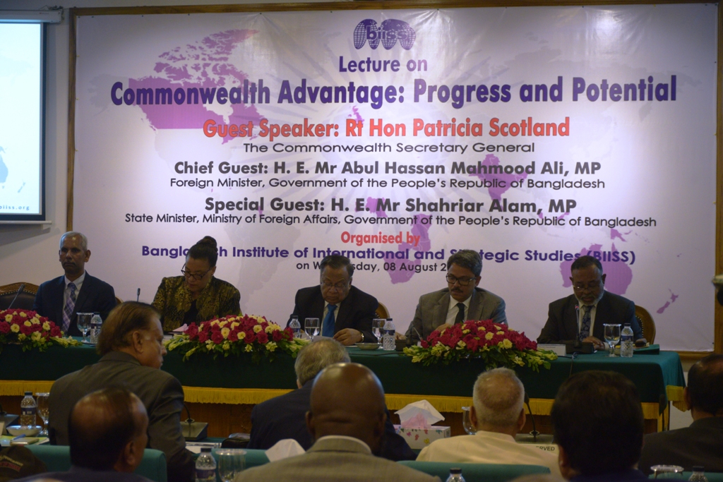 Bangladesh Institute of International and Strategic Studies (BIISS) organised a Seminar on "Commonwealth Advantage: Progress and Potential" on 08 August 2018 at BIISS auditorium in Dhaka. H. E. Mr Abul Hassan Mahmood Ali, MP, Ministry of Foreign Affairs, Government of the People's Republic of Bangladesh was present in the seminar as the Chief Guest. H. E. Mr Shahriar Alam, MP, State Minister, Ministry of Foreign Affairs, Government of the People's Republic of Bangladesh was present in the seminar as the Special Guest H. E. Rt Hon Patricia Scotland, the Commonwealth Secretary General was present as the Guest of Honour. Ambassador Munshi Faiz Ahmad, Chairman, Board of Governors, BLISS, chaired the session. Major General A K M Abdur Rahman, ndc, psc, Director General, BIISS delivered the address of welcome.