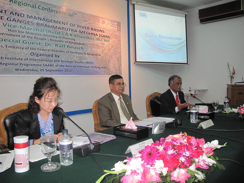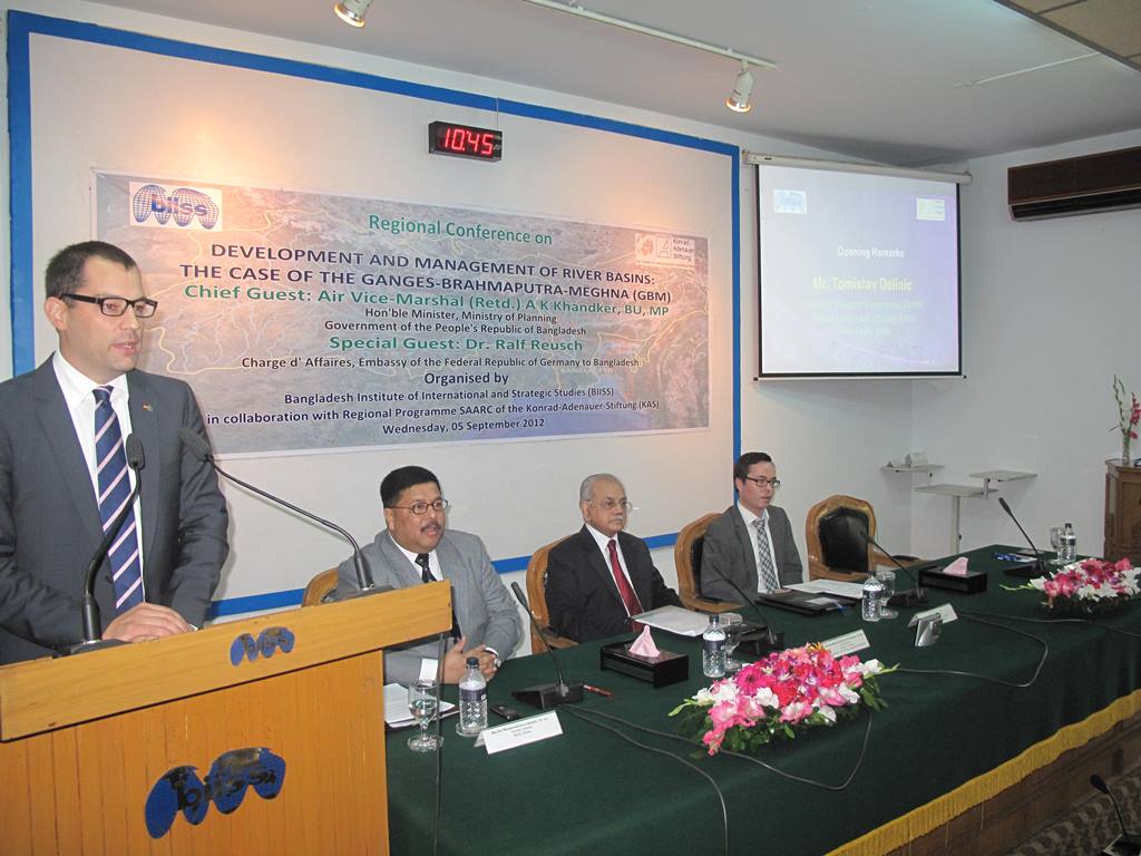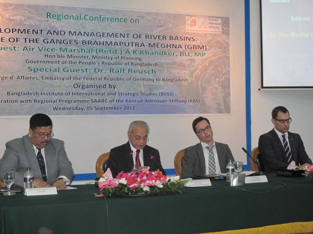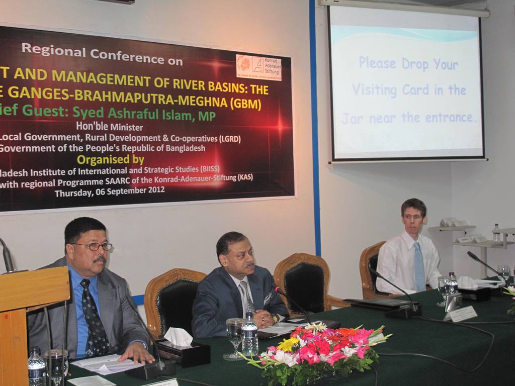 The Bangladesh Institute of International and Strategic Studies (BIISS) in collaboration with the Regional Programme SAARC of the Konrad-Adenaur-Stiftung (KAS) organised a two-day long Regional Conference on Development and Management of River Basins: The Case of the Ganges-Brahmaputra-Meghna (GBM) on 05-06 September 2012 at the BIISS Auditorium, Dhaka.