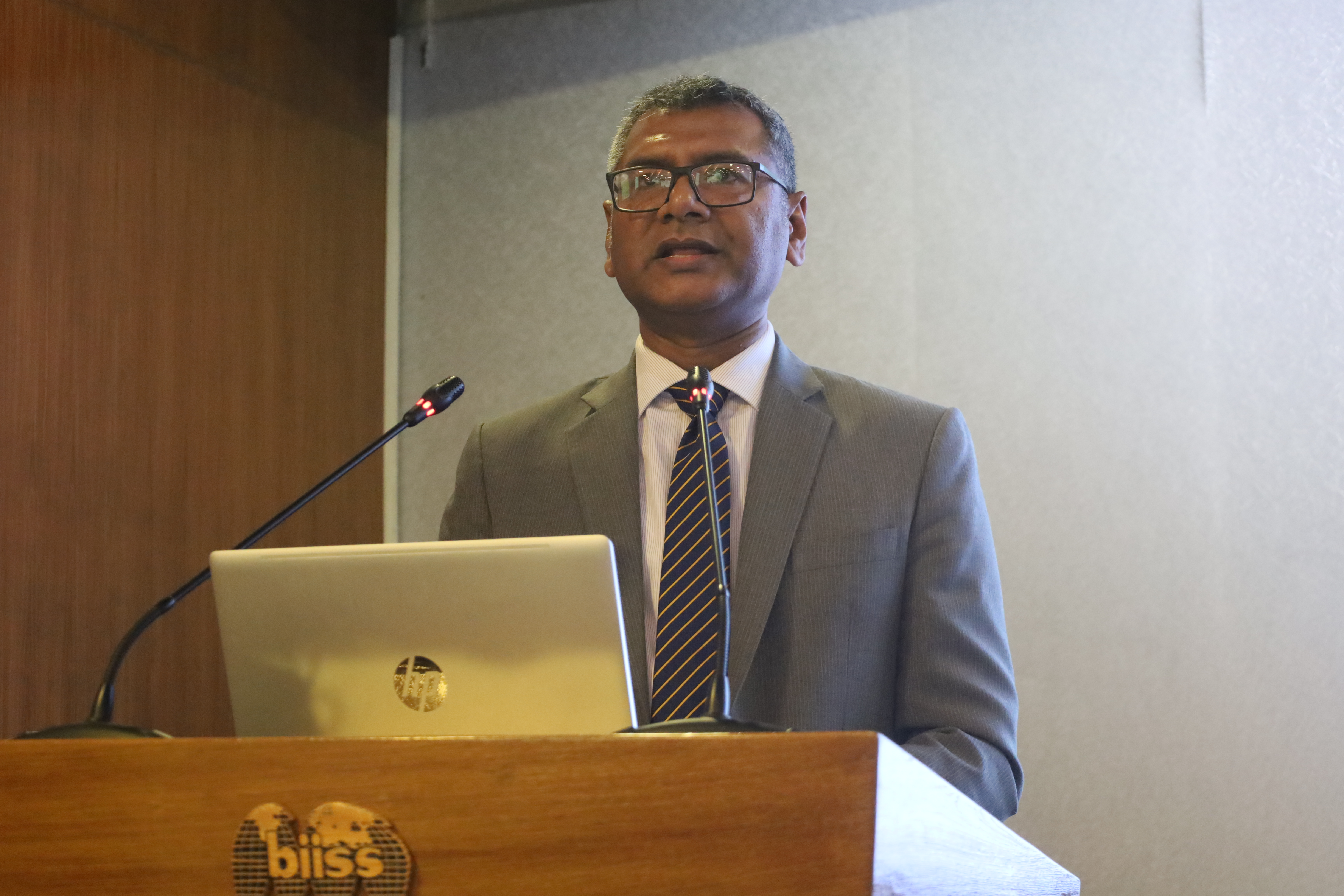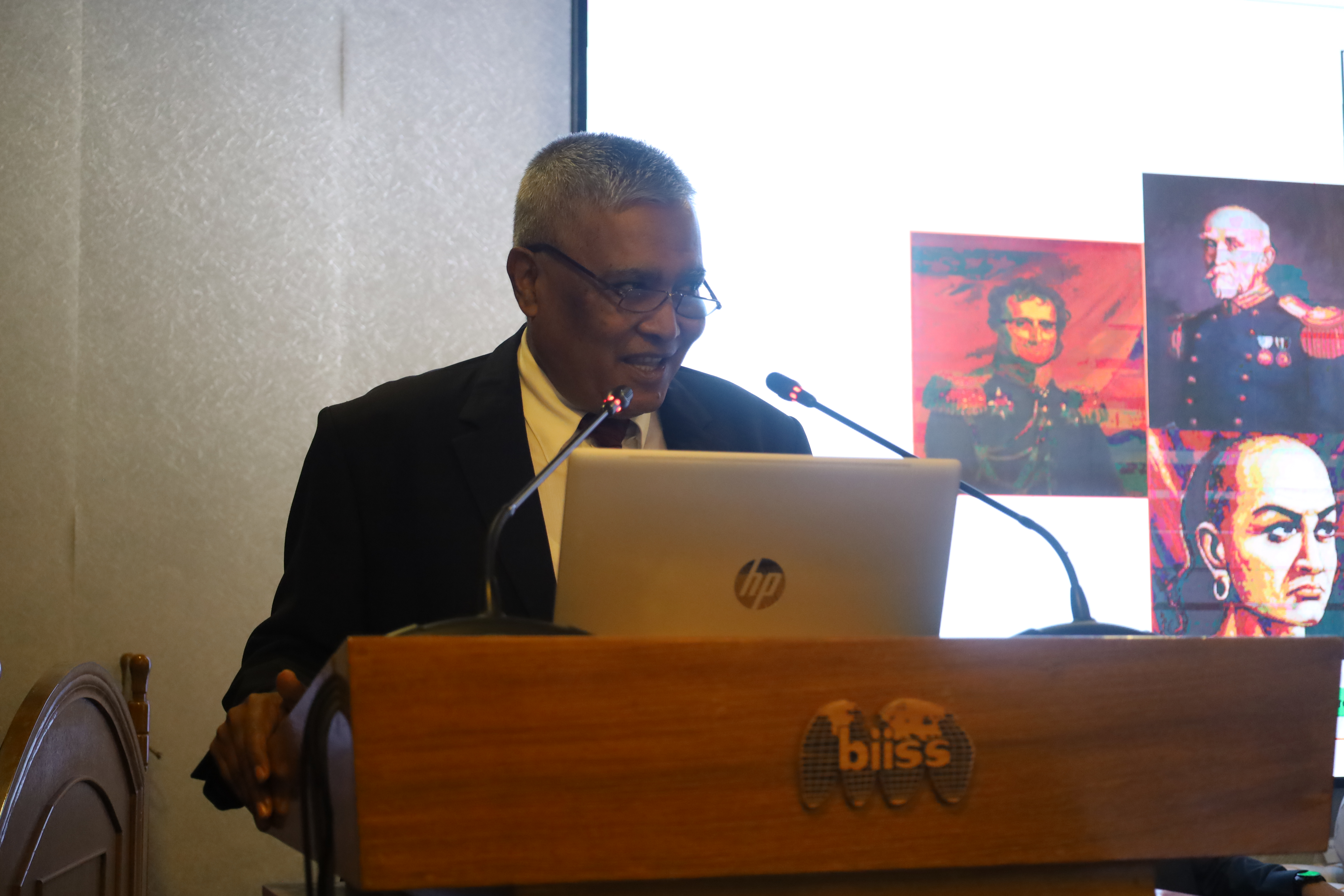 Four presentations were made in the Seminar. Dr ASM Ali Ashraf, Professor, Department of International Relations, University of Dhaka, spoke on “Evolving Notion of Defence Diplomacy and its Role in Achieving Foreign Policy Goals”; ASM Tarek Hassan Semul, Research Fellow, BIISS, talked about “Growing Geopolitical Competition: Challenges and Opportunities of Defence Diplomacy for Bangladesh”; Major General (Retd) Main Ullah Chowdhury, SUP, OSP, awc, psc, Former Deputy Force Commander, United Nations Mission in South Sudan (UNMISS) and A/FC, United Nations Mission for the Referendum in Western Sahara (MINURSO), discussed on “Defence Diplomacy in United Nations and Other Overseas Missions: Horizon to Explore” and Air Vice Marshall (Retd) Mahmud Hussain, BBP, OSP, ndc, psc, acsc, GD (P), Distinguished Expert Bangabandhu Sheikh Mujibur Rahman Aviation and Aerospace University (BSMRAAU), And former Ambassador, Brunei, made a presentation on “Existing Practices of Defence Diplomacy and Future Directions: The Case of Bangladesh”. There was an Open Discussion Session followed by the presentations.