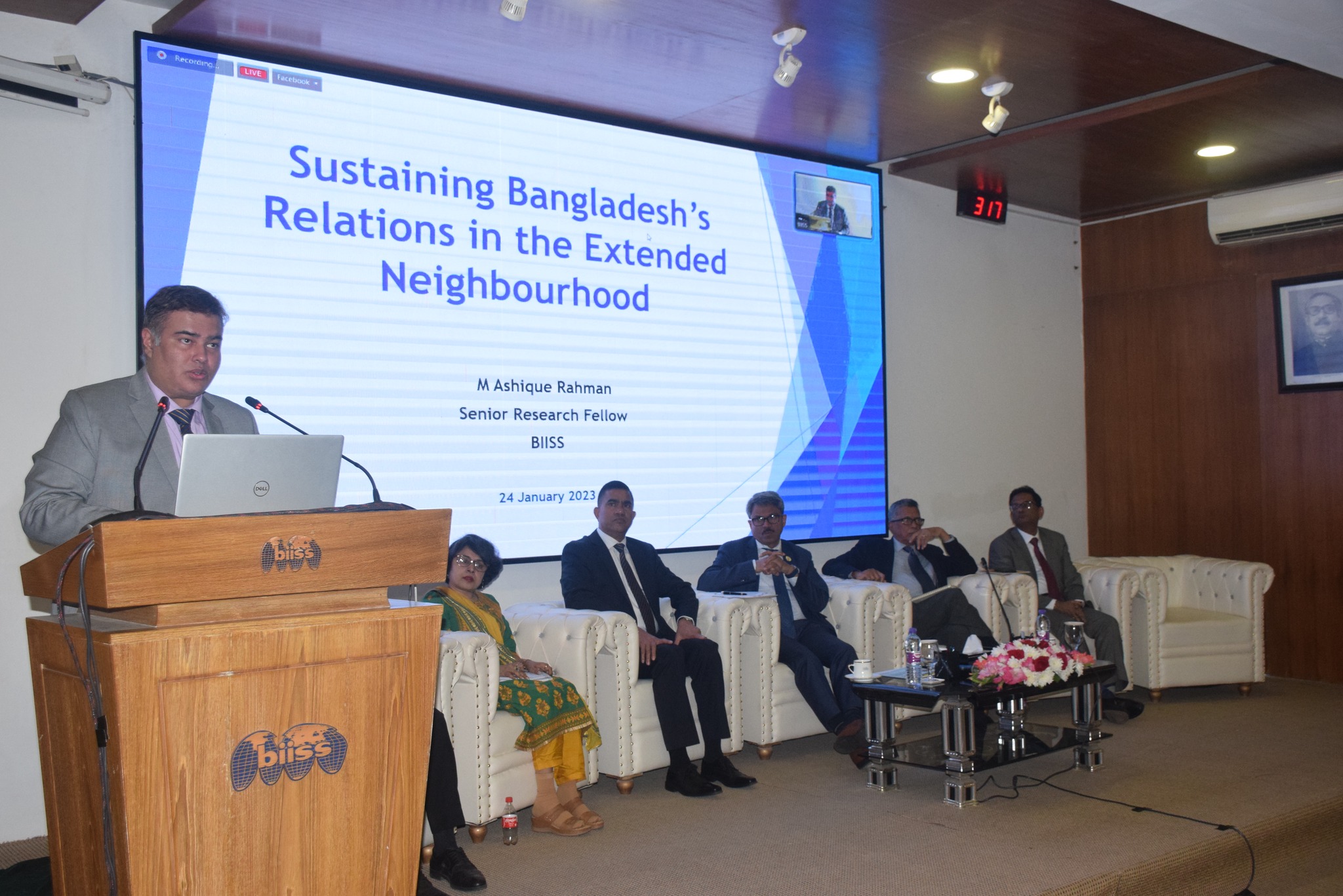 The Bangladesh Institute of International and Strategic Studies (BIISS) organised a seminar on "Strengthening Bangladesh’s Foreign Relations with Neighbours in the Evolving Global Order" on Tuesday, 24 January 2023 at the BIISS Auditorium. H E Mr Md Shahriar Alam, MP, Hon’ble State Minister, Ministry of Foreign Affairs, Government of the People’s Republic of Bangladesh was the Chief Guest. Major General Sheikh Pasha Habib Uddin, OSP, SGP, BAMS, afwc, psc delivered the welcome address. The Session Chair of the event was Ambassador M Humayun Kabir, President of Bangladesh Enterprise Institute (BEI). Four presentations were made in the Seminar on different important topics. Dr Lailufar Yasmin, Professor and Chairperson, Department of International Relations, University of Dhaka made a presentation on 'Navigating Bangladesh’s Foreign Relations with the Neighbours in the Evolving Global Order.” Mr A T M Rokebul Haque, Director General, South Asia Wing, Ministry of Foreign Affairs made his presentation on 'Bangladesh’s Foreign Policy towards her Neighbours: Friendship with Prosperity.’ Dr M Mahfuz Kabir, Research Director, International Studies Division, BIISS presented on 'Exploring New Avenues of Cooperation with the Neighbours.' Finally, Mr M Ashique Rahman, Senior Research Fellow, BIISS delivered on 'Sustaining Bangladesh’s Relations in the Extended Neighbourhood.'