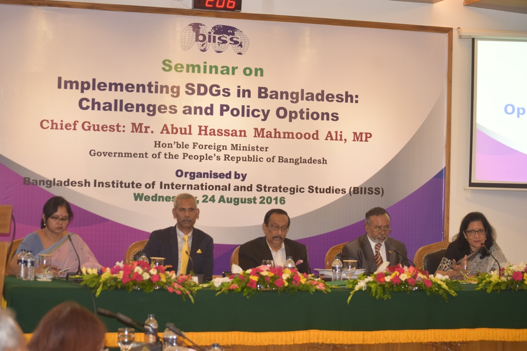 Bangladesh Institute of International and Strategic Studies (BIISS) organised a seminar on “Implementing SDGs in Bangladesh: Challenges and Policy Options” on 24 August 2016 at BIISS Auditorium. Mr Abul Hassan Mahmood Ali, MP, Honourable Foreign Minister, Government of the People’s Republic of Bangladesh was the Chief Guest at the Seminar. The seminar was divided into three sessions including two working sessions. Ambassador Munshi Faiz Ahmad, Chairman, Board of Governors, BIISS, chaired the inaugural and second working session. The first working session was moderated by Dr KAS Murshid, Director General, BIDS. Scholars, academicians, policy makers, former and current government officials were present in the seminar.